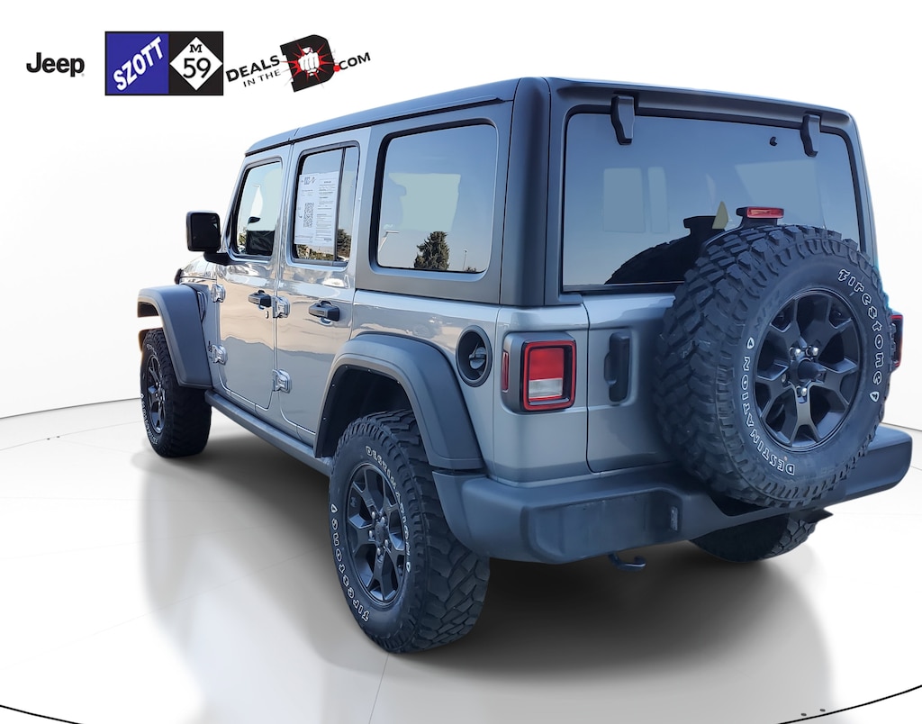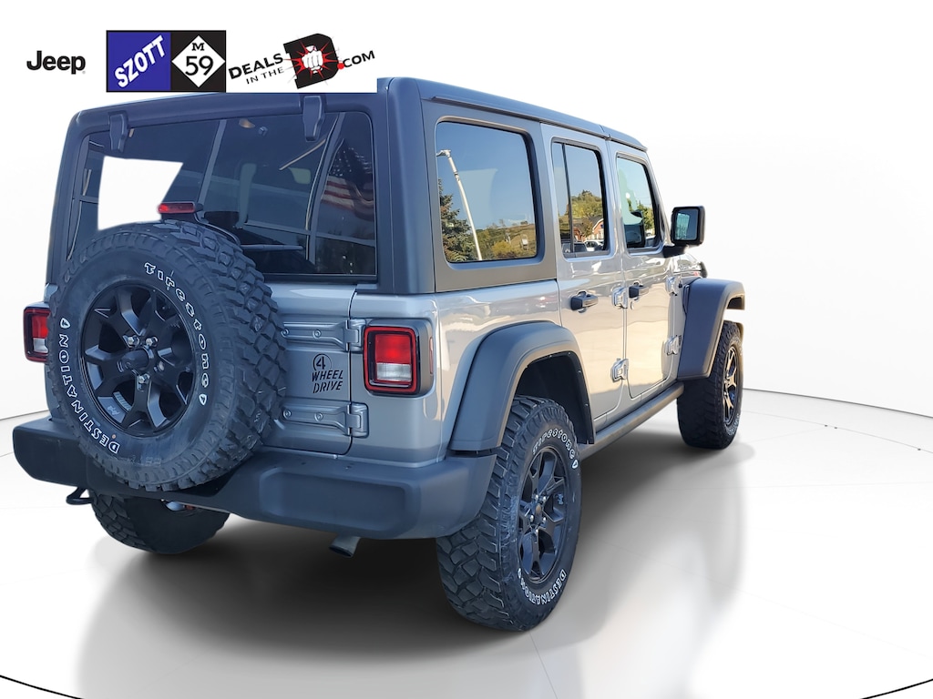 *NO NEED TO LEAVE YOUR HOME OR BUSINESS!! SZOTT DELIVERS!!!, *REMOTE STARTER*, *TOUCH SCREEN RADIO*, *BLUETOOTH, HANDS-FREE*, *USB/AUX INPUTS; play music from your phone*, Backup Camera, Keyless Entry, Multi-zone Climate Control, Steering Wheel Controls, 4 Wheel Drive, Android Auto, Apple CarPlay. CARFAX One-Owner. Clean CARFAX. Odometer is 3166 miles below market average! 2021 Billet Silver Metallic Clearcoat Jeep Certified. 4WD Wrangler Unlimited Willys 8-Speed Automatic
