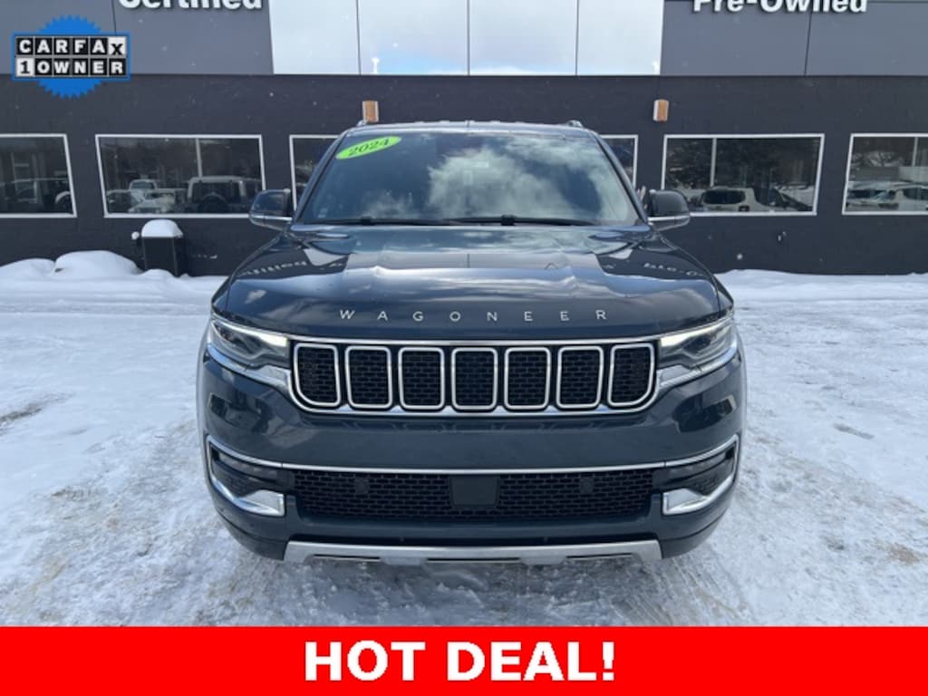 *NO NEED TO LEAVE YOUR HOME OR BUSINESS!! SZOTT DELIVERS!!!. CARFAX One-Owner. Clean CARFAX. 2024 River Rock Jeep Certified. 4WD Wagoneer Series III 8-Speed Automatic With some available options like Quick Order Package 25N, 10 Speakers, 3.55 Rear Axle Ratio, 3rd row seats: bench, 4-Wheel Disc Brakes, ABS brakes, Adjustable pedals, Air Conditioning, Alloy wheels, AM/FM radio: SiriusXM with 360L, Anti-whiplash front head restraints, Apple CarPlay/Android Auto, Audio memory, Auto High-beam Headlights, Auto-dimming door mirrors, Auto-dimming Rear-View mirror, Auto-leveling suspension, Automatic temperature control, Brake assist, Bumpers: body-color, Compass, Delay-off headlights, Driver door bin, Driver vanity mirror, Driver's Seat Mounted Armrest, Dual front impact airbags, Dual front side impact airbags, Electronic Stability Control, Emergency communication system: Wagoneer Connect, Exterior Parking Camera Rear, Four wheel independent suspension, Front anti-roll bar, Front Bucket Seats, Front Center Armrest w/Storage, Front dual zone A/C, Front fog lights, Front reading lights, Fully automatic headlights, Garage door transmitter, Genuine wood console insert, Genuine wood dashboard insert, Genuine wood door panel insert, Heated door mirrors, Heated front seats, Heated rear seats, Heated steering wheel, Illuminated entry, Knee airbag, Leather Trimmed Bucket Seats, Low tire pressure warning, Memory seat, Navigation System, Normal Duty Suspension, Occupant sensing airbag, Outside temperature display, Overhead airbag, Overhead console, Panic alarm, Passenger door bin, Passenger seat mounted armrest, Passenger vanity mirror, Pedal memory, Power adjustable front head restraints, Power door mirrors, Power driver seat, Power Liftgate, Power passenger seat, Power steering, Power windows, Radio data system, Radio: Uconnect 5 Nav w/10.1" Display, Rain sensing wipers, Rear air conditioning, Rear anti-roll bar, Rear dual zone A/C, Rear reading lights, Rear seat center armrest, Rear window defroster, Rear window wiper, Reclining 3rd row seat, Remote keyless entry, Security system, Speed control, Speed-sensing steering, Speed-Sensitive Wipers, Split folding rear seat, Steering wheel memory, Steering wheel mounted audio controls, Tachometer, Telescoping steering wheel, Tilt steering wheel, Traction control, Trip computer, Turn signal indicator mirrors, Variably intermittent wipers, Ventilated front seats, Voltmeter, and Wheels: 20" x 9.0" Aluminum (DISC)