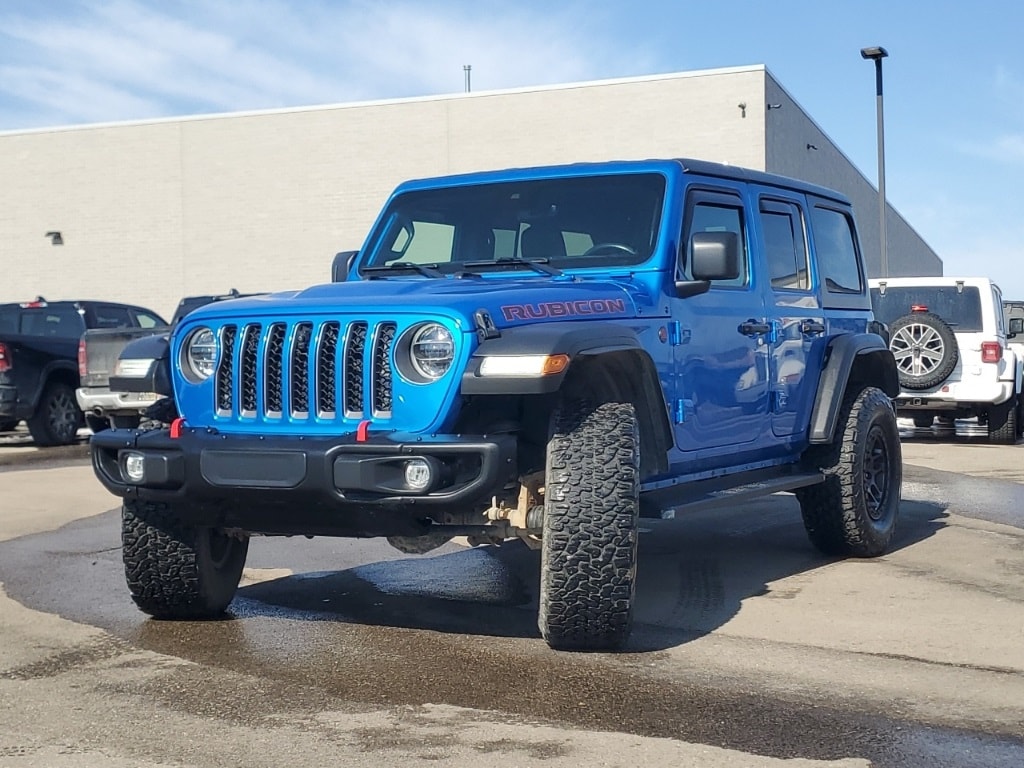 Clean CARFAX. CARFAX One-Owner. *GPS NAVIGATION w/BACK UP CAMERA*, *LEATHER SEATS*, *TOUCH SCREEN RADIO*, *BLUETOOTH, HANDS-FREE*, *NON SMOKER*, Backup Camera, Heated Seats, 35" TIRES. Odometer is 39274 miles below market average! Hydro Blue Pearl Coat 2021 Jeep Wrangler Unlimited Rubicon 4WD 8-Speed Automatic 3.6L V6 24V VVT