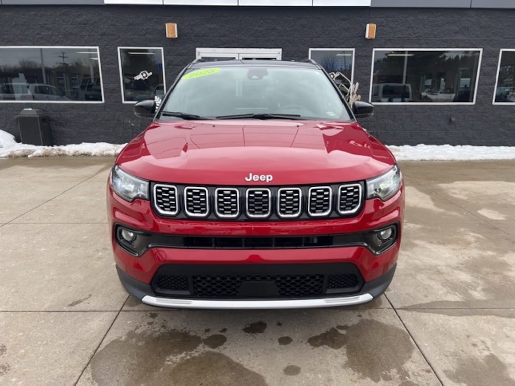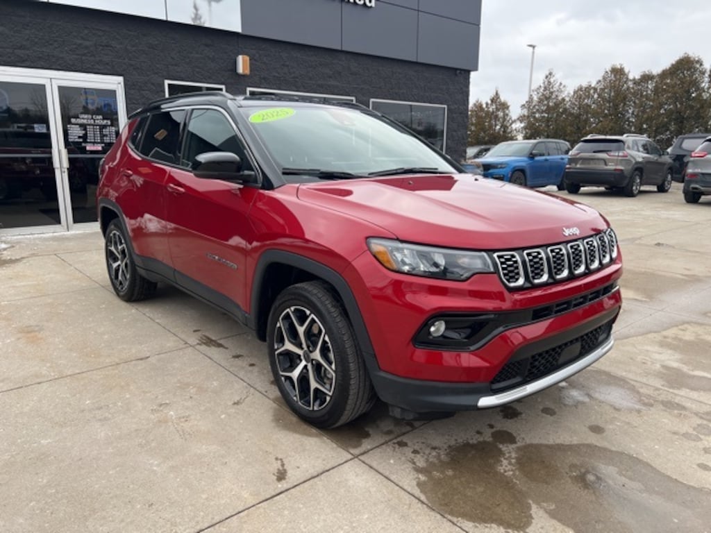 *NO NEED TO LEAVE YOUR HOME OR BUSINESS!! SZOTT DELIVERS!!!. Recent Arrival! CARFAX One-Owner. Clean CARFAX. Odometer is 1414 miles below market average! 2025 Red Hot Pearlcoat Jeep Certified. 4WD Compass Limited 8-Speed Automatic With some available options like Quick Order Package 29G, 10.1" Touchscreen Display, 3.73 Final Drive Ratio, 4-Wheel Disc Brakes, 6 Speakers, ABS brakes, Air Conditioning, Alloy wheels, AM/FM radio: SiriusXM, Apple CarPlay/Android Auto, Auto High-beam Headlights, Auto-dimming Rear-View mirror, Automatic temperature control, Brake assist, Bumpers: body-color, Compass, Delay-off headlights, Driver door bin, Driver vanity mirror, Dual front impact airbags, Dual front side impact airbags, Electronic Stability Control, Emergency communication system: Jeep Connect, Four wheel independent suspension, Front anti-roll bar, Front Bucket Seats, Front Center Armrest w/Storage, Front dual zone A/C, Front fog lights, Front License Plate Bracket, Front reading lights, Fully automatic headlights, Heated door mirrors, Heated front seats, Illuminated entry, Knee airbag, Leather Shift Knob, Leather steering wheel, Leatherette Seats, Low tire pressure warning, Occupant sensing airbag, Outside temperature display, Overhead airbag, Overhead console, Panic alarm, ParkView Rear Back-Up Camera, Passenger door bin, Passenger vanity mirror, Power door mirrors, Power driver seat, Power steering, Power windows, Premium audio system: UConnect 5, Radio: Uconnect 5 w/10.1" Display, Rain sensing wipers, Rear anti-roll bar, Rear seat center armrest, Rear window defroster, Rear window wiper, Remote keyless entry, Security system, Speed control, Split folding rear seat, Spoiler, Steering wheel mounted audio controls, Tachometer, Telescoping steering wheel, Tilt steering wheel, Traction control, Trip computer, Turn signal indicator mirrors, Variably intermittent wipers, and Wheels: 18" x 7" Painted Diamond Cut Alum (DISC)