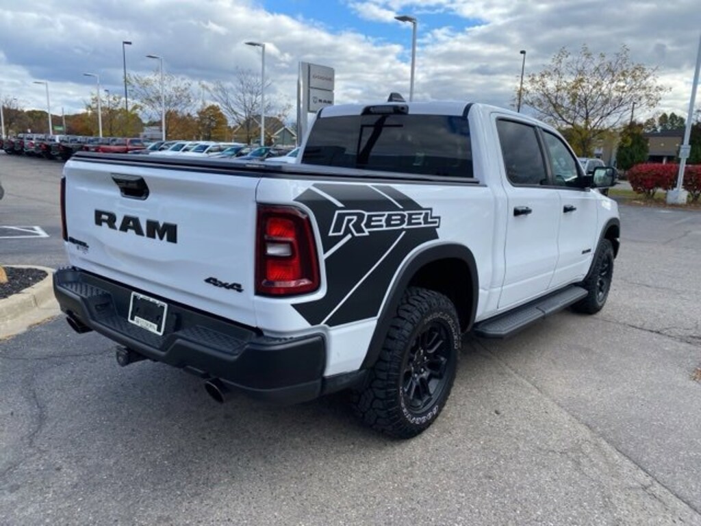 Recent Arrival! Clean CARFAX. CARFAX One-Owner. 2025 Ram 4WD 1500 Rebel Bright White Clearcoat Odometer is 7900 miles below market average! 7 YR / 100K Miles Dodge Manufacture Powertrain Warranty.